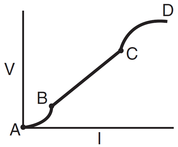 Question: The graph below represents the relationship between the potential difference (V) across a resistor and the current (I) through the resistor.