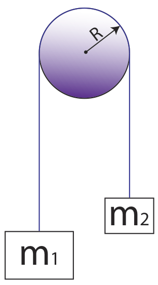 Question: Two masses, m1 and m2, are hanging by a massless string from a frictionless pulley. If m1 is greater than m2, determine the acceleration of the two masses when released from rest.