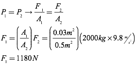 Question: A hydraulic system is used to lift a 2000-kg vehicle in an auto garage. If the vehicle sits on a piston of area 0.5 square meter, and a force is applied to a piston of area 0.03 square meters, what is the minimum force that must be applied to lift the vehicle?