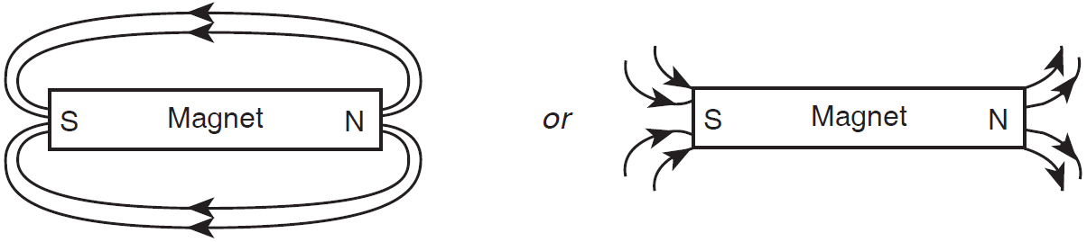 Question: Draw a minimum of four field lines to show the magnitude and direction of the magnetic field in the region surrounding a bar magnet.
