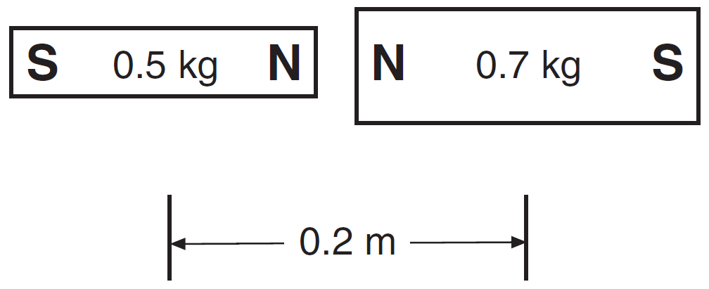 Question: The diagram below represents a 0.5-kilogram bar magnet and a 0.7-kilogram bar magnet with a distance of 0.2 meter between their centers.