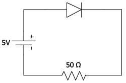 Answer: Because the voltage source provides more than 5V of forward bias, you can assume the diode is turned on. Therefore, the voltage drop across the diode must be 0.7 volts, leaving 4.3 volts to drop across the resistor. You can find the current through the resistor (and therefore through the entire circuit since the circuit is in series) using Ohm's Law.