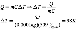 Question: A half-carot diamond (0.0001 kg) absorbs five Joules of heat. How much does the temperature of the diamond increase?
