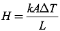 Looking more closely at conduction specifically, the rate of heat transfer (H), as measured in Joules per second, or Watts, depends on the magnitude of the temperature difference across the object (ΔT), the cross-sectional area of the object (A), the length of the object (L) and the thermal conductivity of the material (k). Thermal conductivities are typically provided to you in a problem, or you can look them up in a table of thermal conductivities.