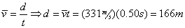 Question: At an outdoor physics demonstration, a delay of 0.50 second was observed between the time sound waves left a loudspeaker and the time these sound waves reached a student through the air. If the air is at STP, how far was the student from the speaker?