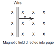 Question: The diagram at right shows a wire moving to the right at speed v through a uniform magnetic field that is directed into the page. As the speed of the wire is increased, the induced potential difference will: